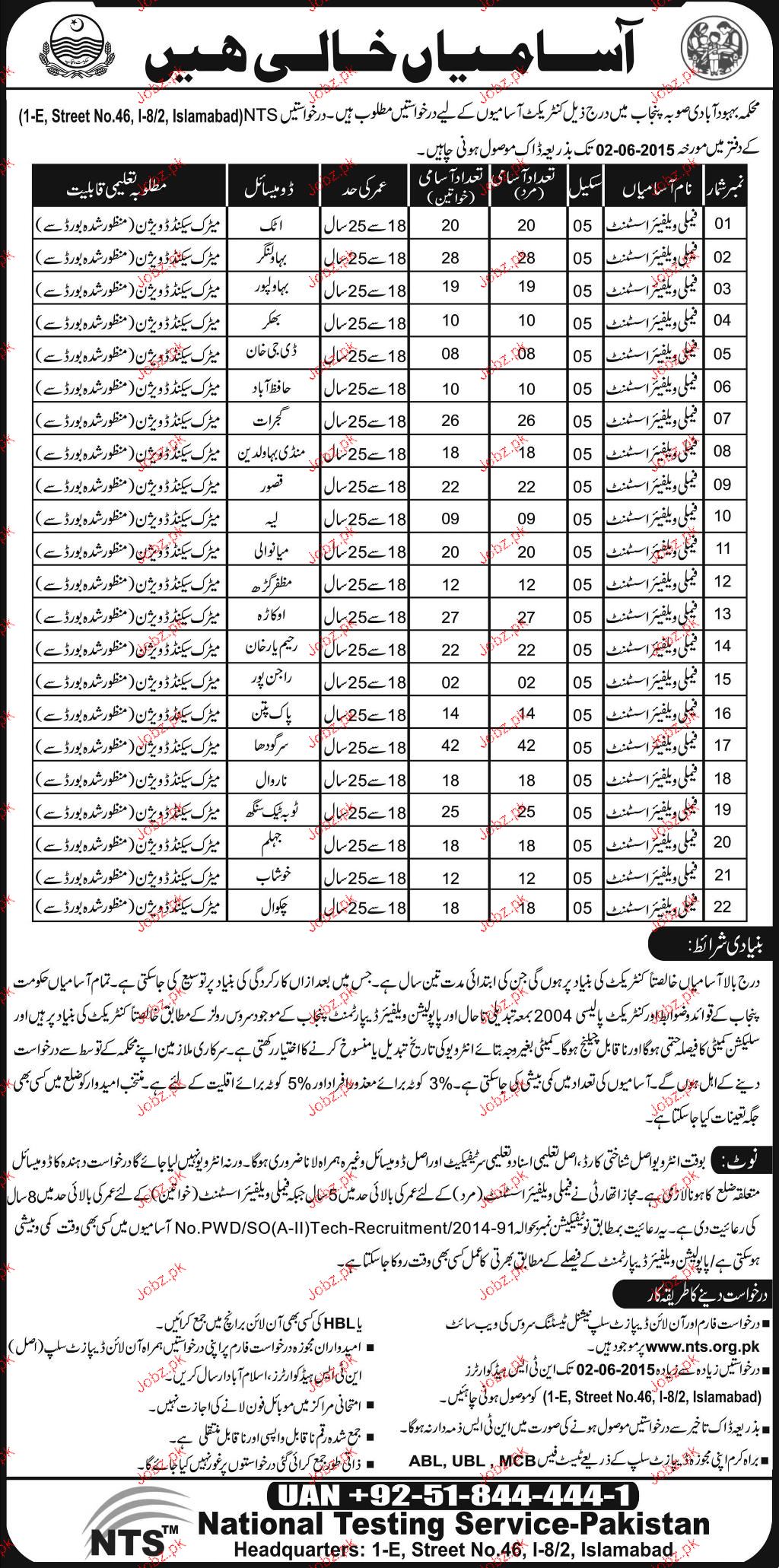 Family Welfare Assistants Job In Population Welfare Dept