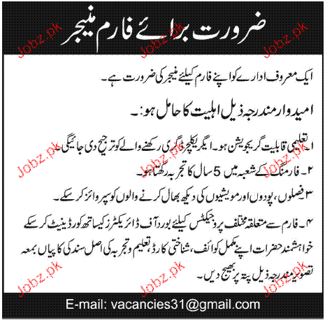 Apply as per details in job advertisement. Login to view further details of how to apply via https://www.jobz.pk online.