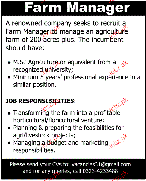 Apply as per details in job advertisement. Login to view further details of how to apply via https://www.jobz.pk online.