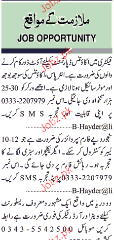 Farm Supervisor, Waiters, Order Takers Job Opportunity