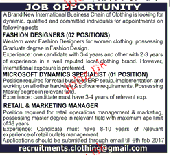 Fashion Designers, Specialists And Marketing Manager Wanted