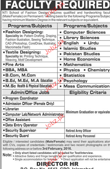 Apply as per details in job advertisement. Login to view further details of how to apply via https://www.jobz.pk online.