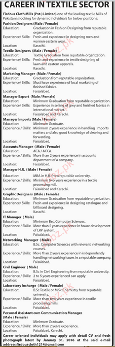 Apply as per details in job advertisement. Login to view further details of how to apply via https://www.jobz.pk online.