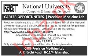 Vacancies in National University of Computer and Emerging Sciences Advertisement May 2019