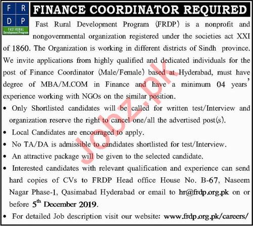 Vacancies in Fast Rural Development Program FRDP Advertisement November 2019