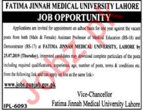 Latest Fatima Jinnah Medical University FJMU Education Posts Lahore 2025