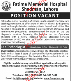 Latest Fatima Memorial Hospital Education Posts Lahore 2025