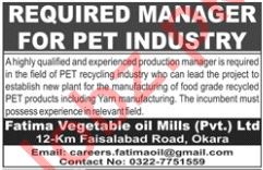 Fatima Vegetable Oil Mills Pvt Ltd Manager Jobs