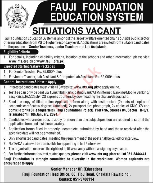 Vacancies in Fauji Foundation Education System School Advertisement December 2023