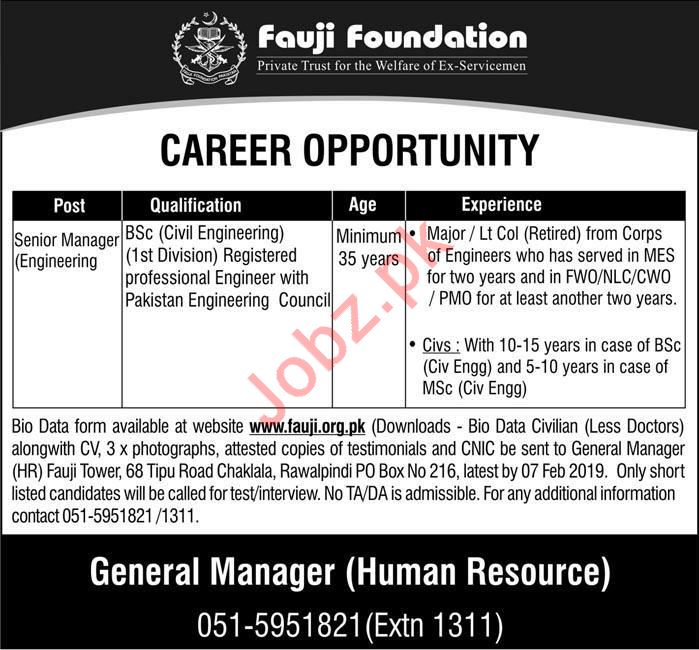 Latest Fauji Foundation Engineering Posts Rawalpindi 2025