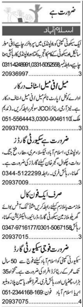 Private Company invites applications for job positions advertised in daily Express dated 20 June 2024 for following vacancies in Islamabad, murree, hattar, chakwal, taxila, fateh jang, gujar khan and rawalpindi Islamabad Pakistan.
