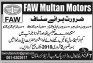 FAW Multan Motors Jobs 2018 In Multan