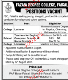 Apply as per details in job advertisement. Login to view further details of how to apply via https://www.jobz.pk online.
