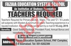 Fazaia Education System School E 9 Islamabad Jobs 2019