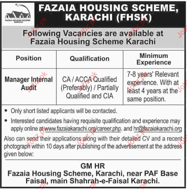 Latest Fazaia Housing Scheme Management Posts Karachi 2025