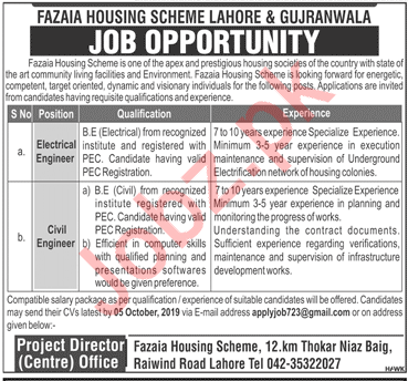 Latest Fazaia Housing Scheme Engineering Posts Lahore 2025