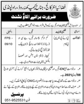 Latest Fazaia Inter College Jinnah Camp Education Posts Rawalpindi 2025