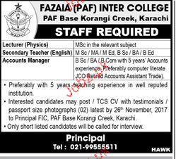 Latest Fazaia Inter College Teaching Posts Karachi 2025