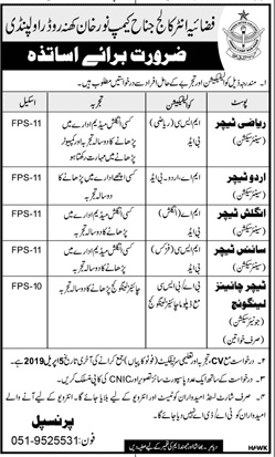 Vacancies in Fazaia Inter College Advertisement March 2019