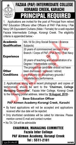 Fazaia PAF Intermediate College Job For Principal