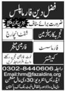 Vacant posts including pharmacist, pharmacy manager, salesman, shift incharge and cashier are announced in Fazal Din Pharma Plus Pvt Ltd Lahore, lahore Punjab Pakistan as per 16 October 2023 advertisement in daily Jang Newspaper. Candidates with Master, Middle, Intermediate, Bachelor, M.com, B.com, Matric and MS etc. educational background will be preferred.