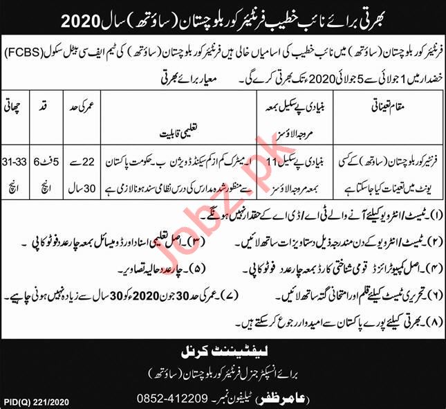 FC Battle School FCBS Khuzdar Jobs 2020 For Naib Khateeb