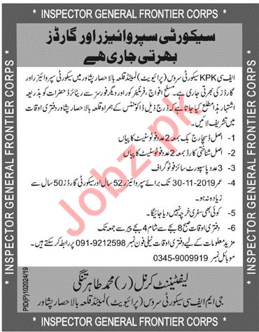 Vacancies in FC KPK Security Service Pvt Ltd Advertisement October 2019