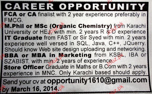FCA / CA Finalist, Mphill / MSc Chemistry, IT Graduates Want