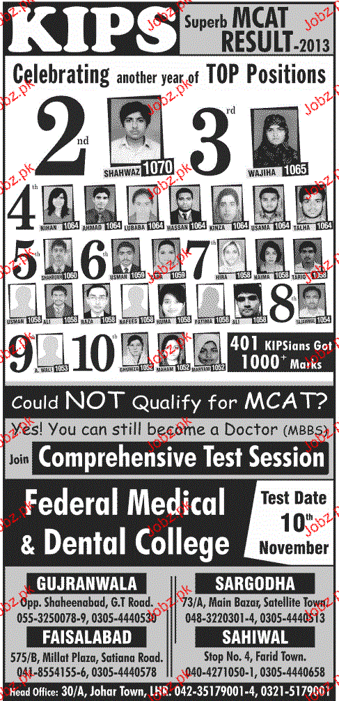 Federal Medical & Dental College Admission in MBBS in Sahiwal Read newspaper ad for exact details.