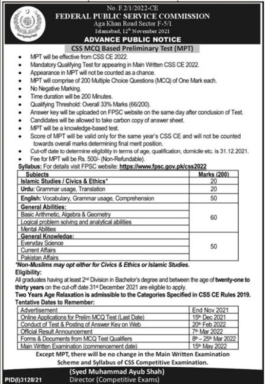 Vacancies in Federal Public Service Commission FPSC Advertisement November 2021