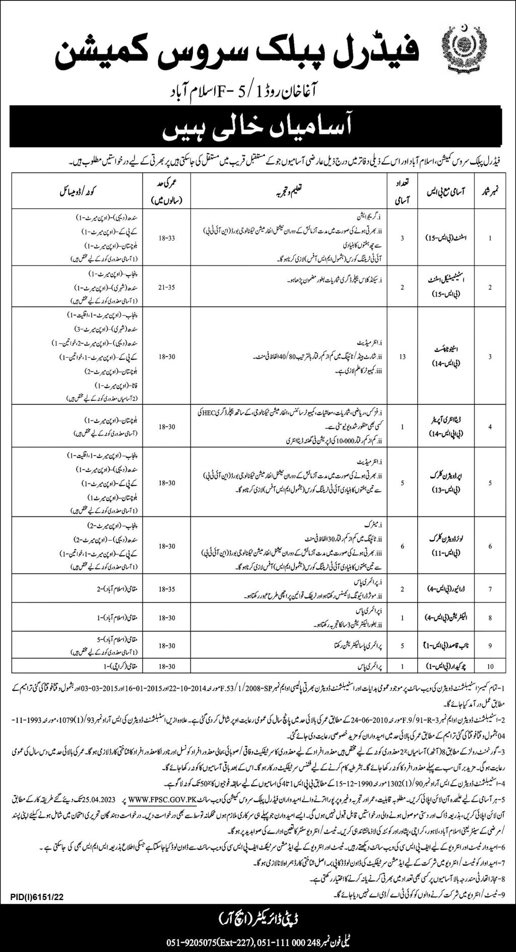 Vacancies in Federal Public Service Commission FPSC Advertisement April 2023