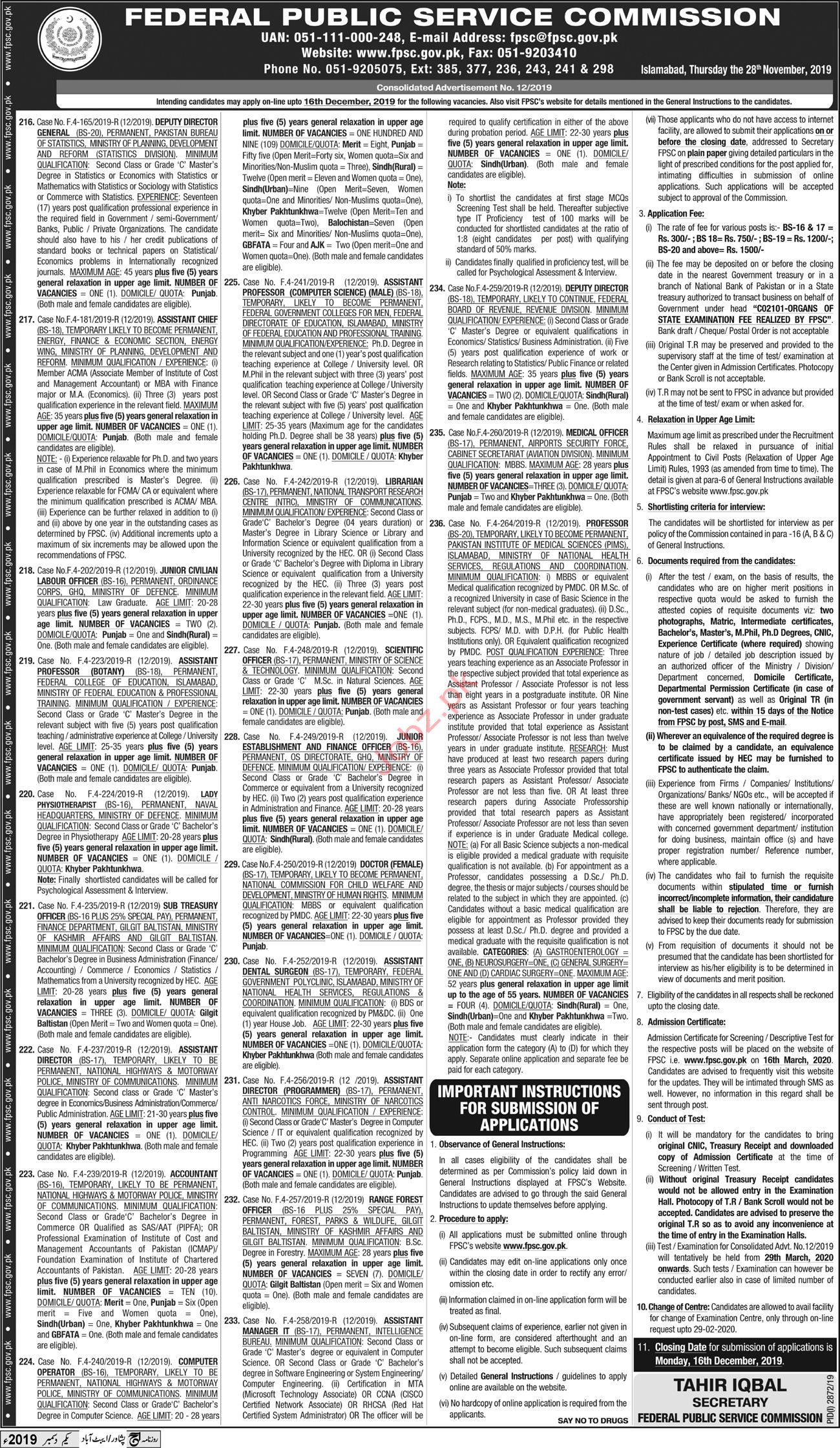 Federal Public Service Commission FPSC Jobs DEC 2019