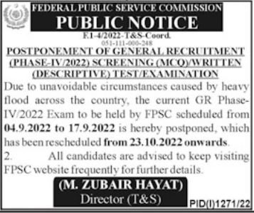 Federal Public Service Commission FPSC is looking for candidates for following posts as per job advertisement published in daily K2 Newspaper of August 31, 2022 for location Islamabad, islamabad Islamabad Pakistan: