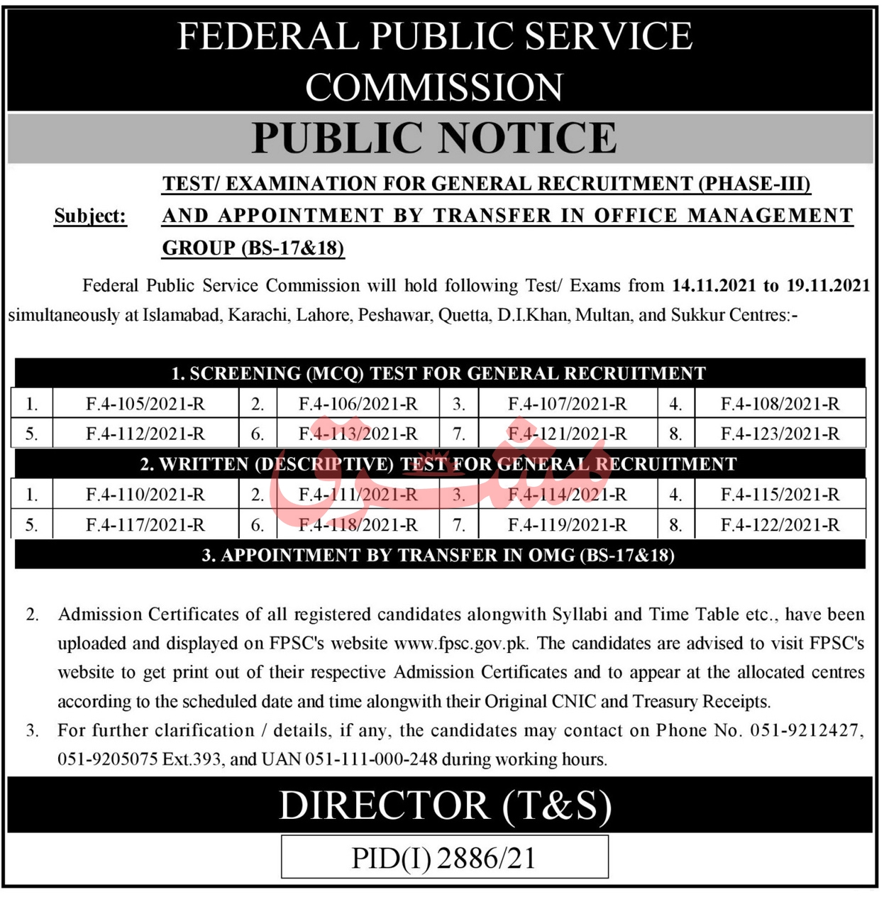 Vacancies in Federal Public Service Commission FPSC Advertisement November 2021
