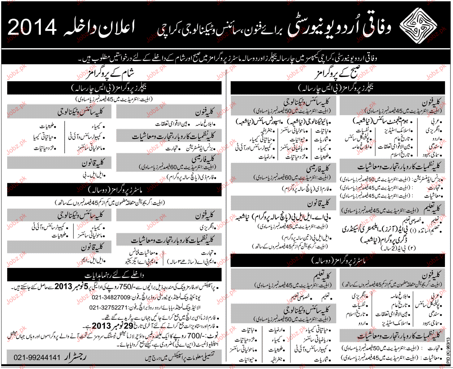 Federal Urdu University BA, BCom and MA in Karachi Read newspaper ad for exact details.