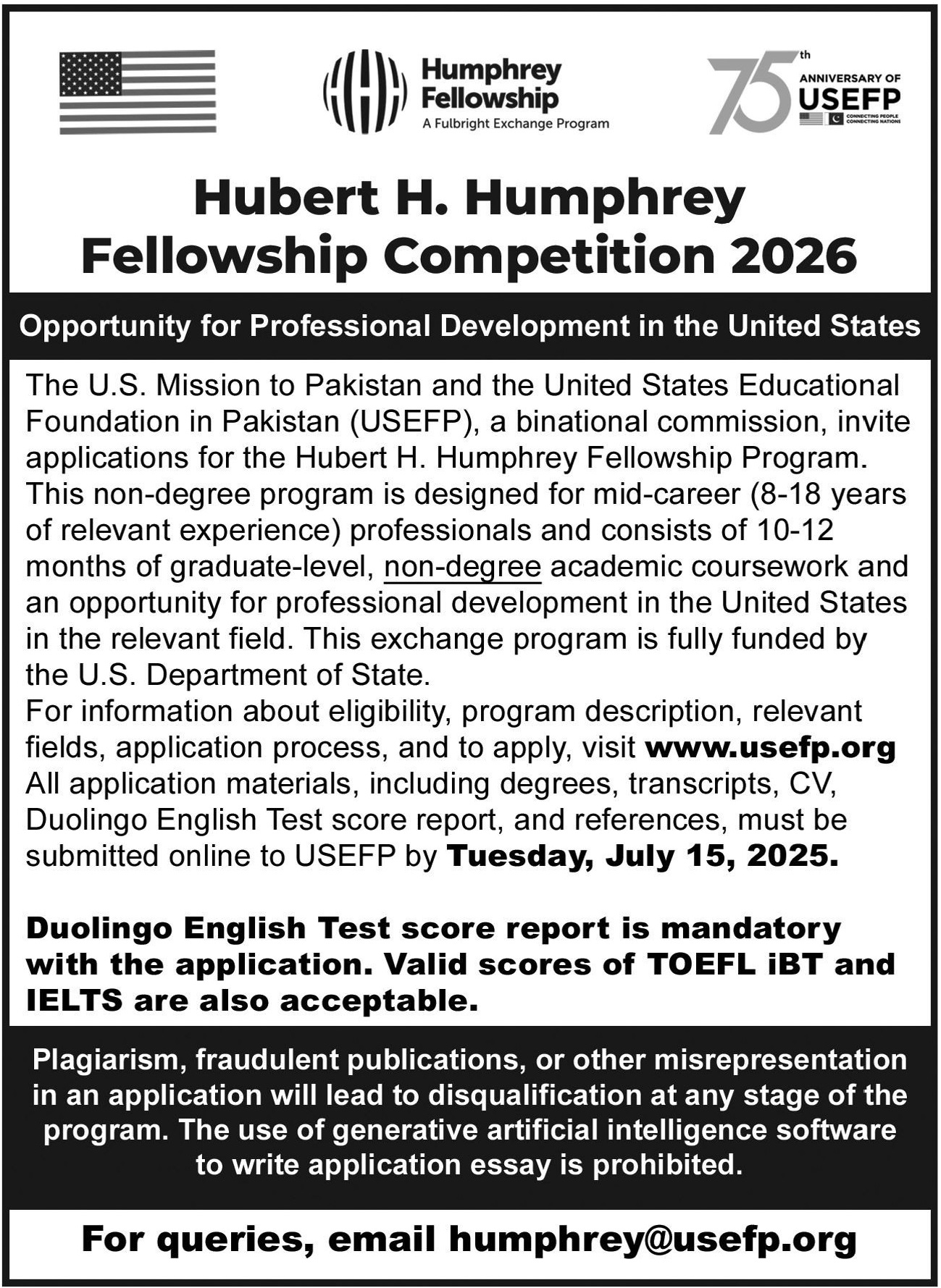 The United States Educational Foundation in Pakistan USEFP jobs advertisement dated about 1 June 2025 in daily Express Tribune Newspaper invites application for the vacant post of fellowship competition in Islamabad, islamabad Islamabad Pakistan. Master and Bachelor etc. educational qualification will be preferred.