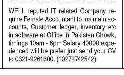 Female Accountant Jobs 2022 In IT Company Karachi