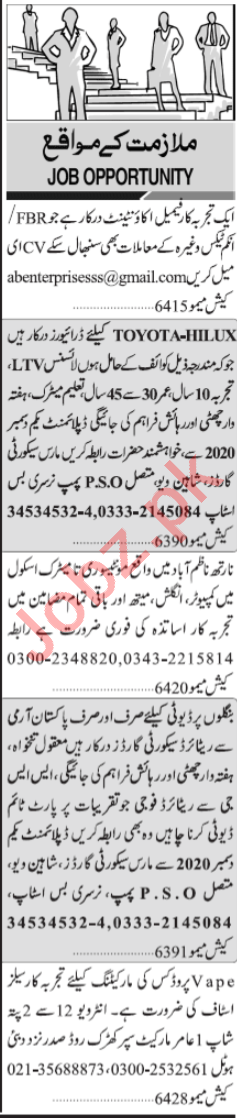 Apply as per details in job advertisement. Login to view further details of how to apply via https://www.jobz.pk online.