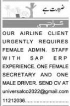 Private Company invites applications for job positions advertised in daily Express dated 15 March 2022 for following vacancies in Karachi, karachi Sindh Pakistan.