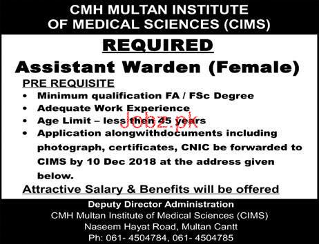 Vacancies in CMH Multan Institute of Medical Sciences CIMS Advertisement December 2018