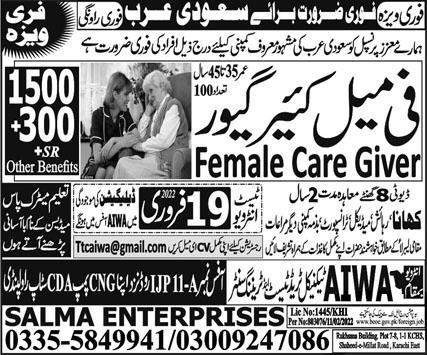 Salma Enterprises invites applications for job positions advertised in daily Express dated 16 February 2022 for following vacancies in Saudi Arabia Saudi Arabia.