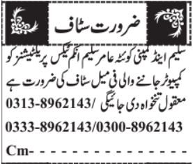 Private Company invites applications for job positions advertised in daily Jang dated 8 July 2023 for following vacancies in Quetta Balochistan Pakistan.