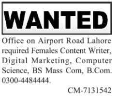 Female Content Writer & Digital Marketing Expert Jobs 2023