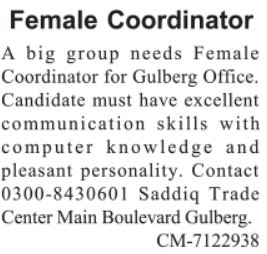 Female Coordinator & Coordinator Jobs 2022 In Lahore