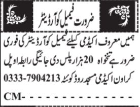 Female Coordinator & Coordinator Jobs 2022 in Quetta