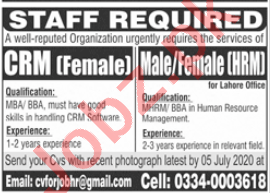 Female CRM & HR Manager Jobs 2020 in Lahore