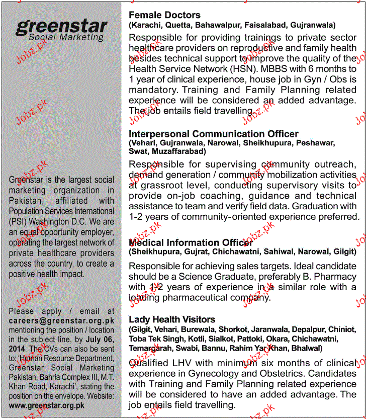 Apply as per details in job advertisement. Login to view further details of how to apply via https://www.jobz.pk online.