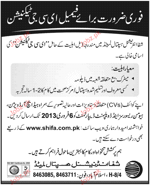Apply as per details in job advertisement. Login to view further details of how to apply via https://www.jobz.pk online.