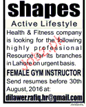 Female Gym Instructors Job Opportunity