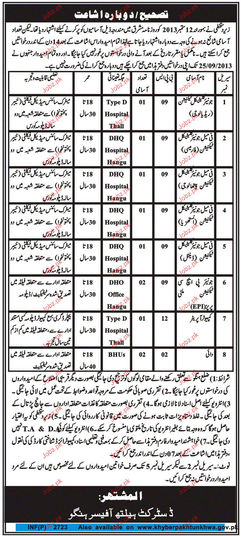 Apply as per details in job advertisement. Login to view further details of how to apply via https://www.jobz.pk online.